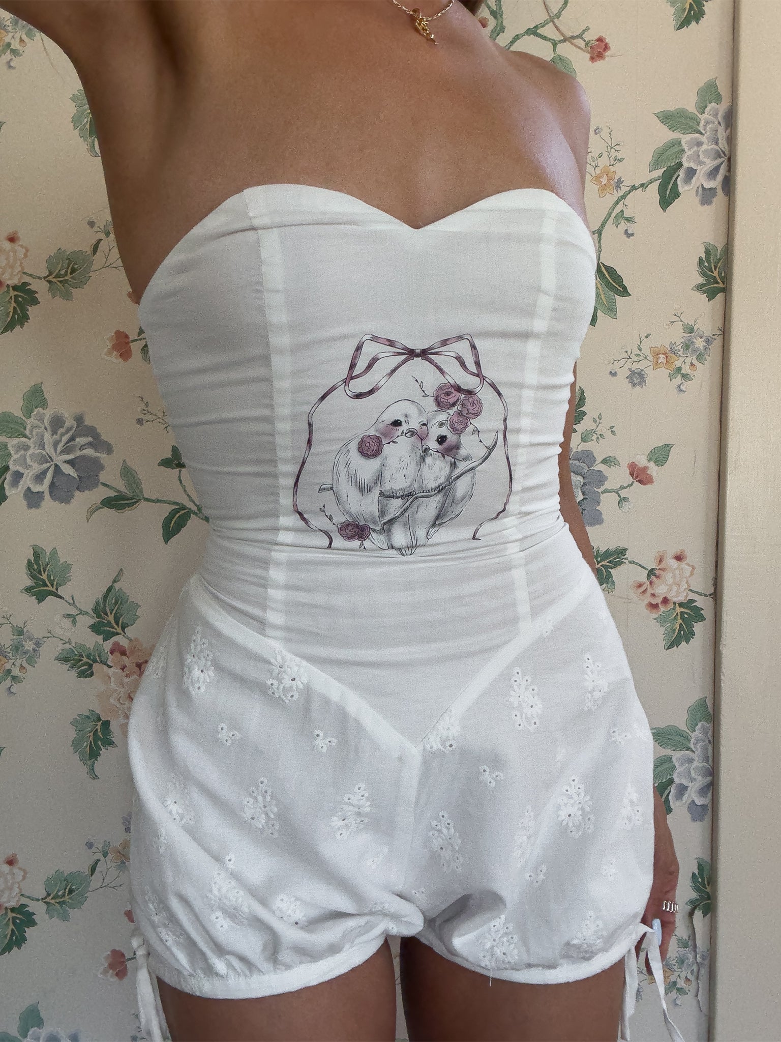 - 精緻蕾絲裝飾細節在脖子
